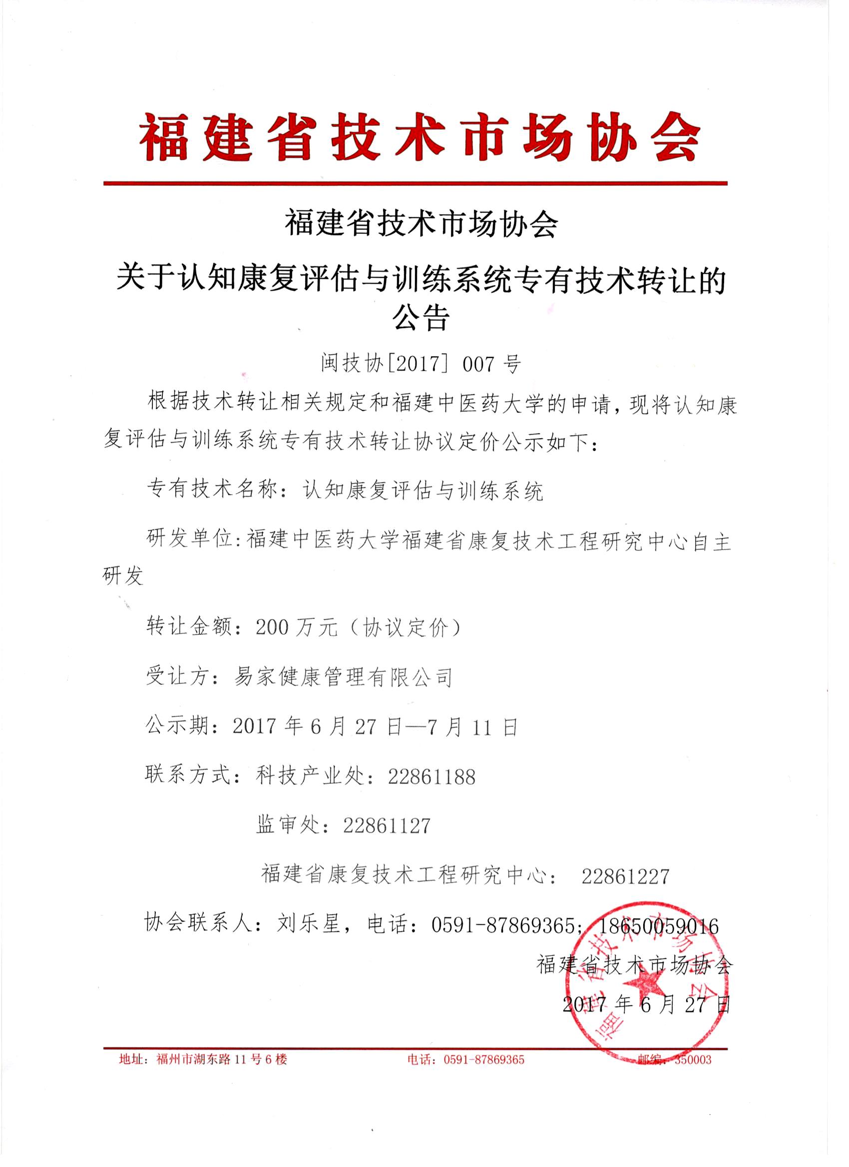 协会公告 闽技协[2017]007号:福建省技术市场协会关于认知康复评估与训练系统专有技术转让的公告 by admin 2017-07-03 3.5K 相关文章 闽技协[2025]008号:关于缴纳年度会费的通知 2025-08-05 关于民间藏品鉴别服务的告示 2025-07-14 福建省技术市场协会第七届会员名单 2025-06-11 关于参加与拉美国家高端智库青年学者交流会的报名通知 2025-06-11 关于参加福建-乌拉圭经贸推介会报名通知 2025-05-27 闽技协[2025]001号:关于成立协会换届领导小组的决定 2025-01-23