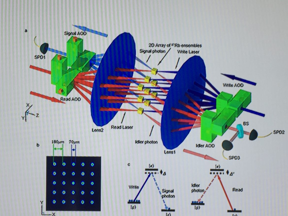 加州理工学院的著名量子信息和量子光学专家金布尔 (Kimble)研究组曾于2010年实现了4个DLCZ型量子接口之间的纠缠,代表此前的国际最高水平。为实现更多量子接口间的纠缠,构造更大的量子纠缠网络,段路明研究组研发了新颖的二维量子接口阵列,解决了相关技术问题,可以方便地实现多个量子接口间的纠缠。研究人员通过光束复分技术,独立寻址并相干调控5×5的量子接口阵列,制备了多体量子纠缠态。在25个量子接口之间,实验利用纠缠判据以高置信度证明至少存在22体以上的真实纠缠,刷新了量子接口纠缠数量的世界记录。
