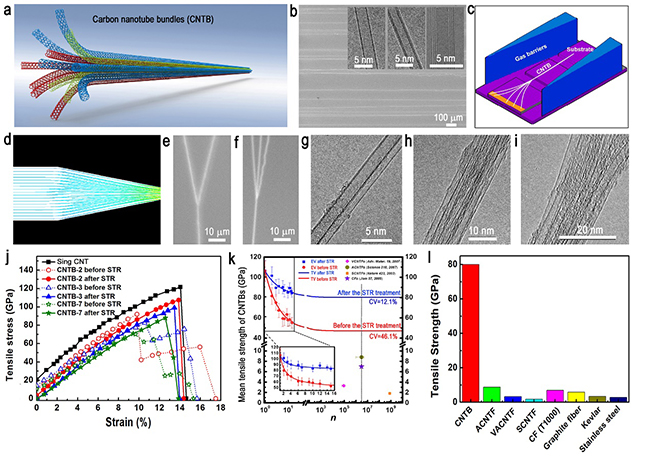 清华新闻网5月16日报道,该校化工系魏飞教授团队与航天航空学院李喜德教授团队合作,在超强碳纳米管纤维领域取得重大突破,在世界上首次报道了接近单根碳纳米管理论强度的超长碳纳米管管束,其拉伸强度超越了目前发现的所有其它纤维材料。相关成果以《拉伸强度超过80GPa的碳纳米管管束》(Carbon Nanotube Bundles with Tensile Strength over 80 GPa)为题,于5月14日在线发表于纳米领域国际顶级学术期刊《自然•纳米技术》(Nature Nanotechnology)上。