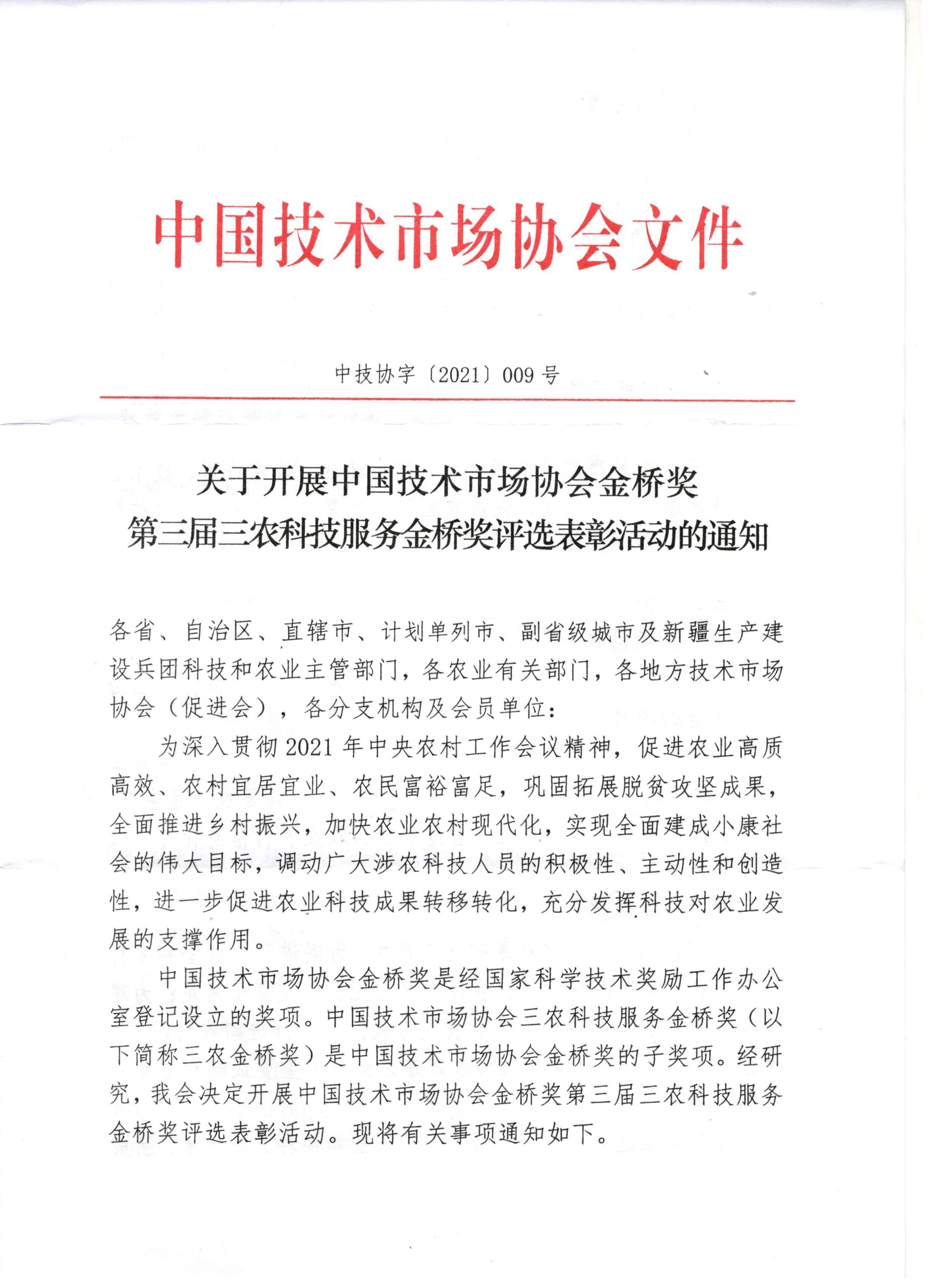 协会公告 关于开展中国技术市场协会金桥奖第三届三农科技服务金桥奖评选表彰活动的通知 by 会长 2021-04-15 2K 相关文章 闽技协[2025]008号:关于缴纳年度会费的通知 2025-08-05 关于民间藏品鉴别服务的告示 2025-07-14 福建省技术市场协会第七届会员名单 2025-06-11 关于参加与拉美国家高端智库青年学者交流会的报名通知 2025-06-11 关于参加福建-乌拉圭经贸推介会报名通知 2025-05-27 闽技协[2025]001号:关于成立协会换届领导小组的决定 2025-01-23