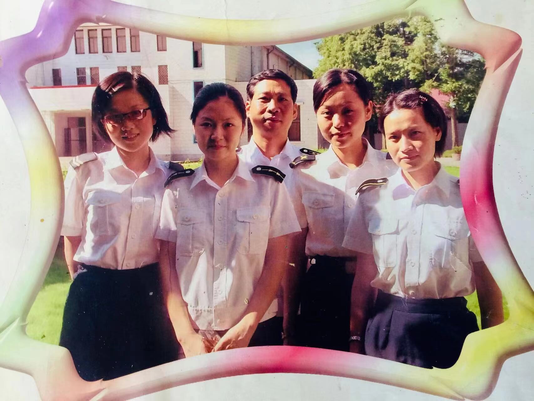 2001年我在浙江舟山岛海军某部队任副部队长。学校一放暑假,她就从南京赶到舟山看我。海岛的一切对她都是新鲜而奇妙的。小时候,她朗诵过“危楼高百尺,手可摘星辰”。可是在南京生活了十几年,她几乎没见过什么星辰,即使偶尔窥见一两个,也是那样的模糊,那样的遥远,若隐若现。到了岛上,头顶的星星又多又亮,仿佛近在咫尺,举手可摘。高中的学习生活相当紧张,她想在这美丽神奇的岛上好好放松一个假期。但令她意外的是,我早就另有安排。她一到岛上就被我安排到女兵连当见习女兵,提前军训。我知道这对她有点过于严苛,但我更相信这会让她受益多多。一个多月的兵营生活,虽然不能把她变成一名合格的战士,但至少会让她受到战士的熏陶。她可以亲眼目睹那些比她大不了多少、风华正茂的女孩子们,如何放弃红装,着上武装,如何为了祖国的海防而剪断长辫,丢掉高跟,收起首饰,擦去口红,在操场上摸爬滚打,在岗位上兢兢业业。她着军装的这张珍贵照片,就是在女兵连留下的。