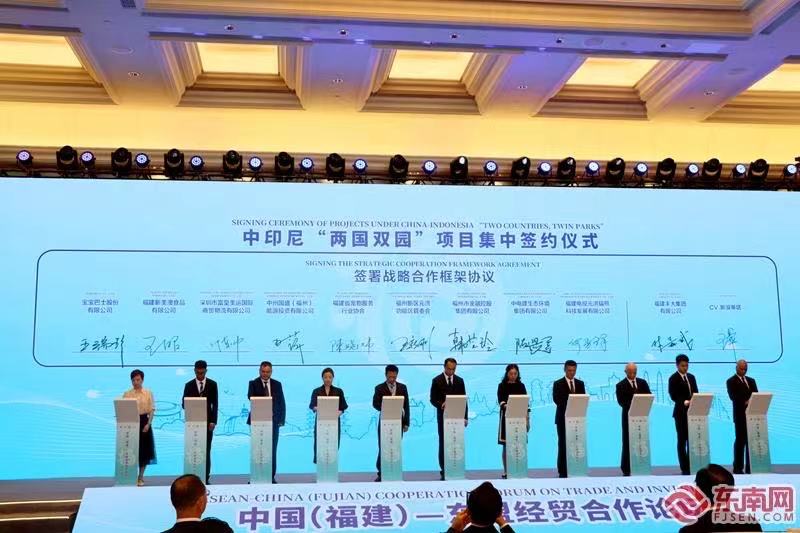 8月6日下午,中国(福建)—东盟经贸合作论坛在福州举行。省市领导与东盟各国政府官员、驻华使领馆官员、中国—东盟中心秘书处及各界代表等参加,并见证了首批对印尼重大投资授牌、公共服务平台揭牌、项目签约和集中开竣工仪式,论坛还举行了中印尼“两国双园”高质量发展成果发布。