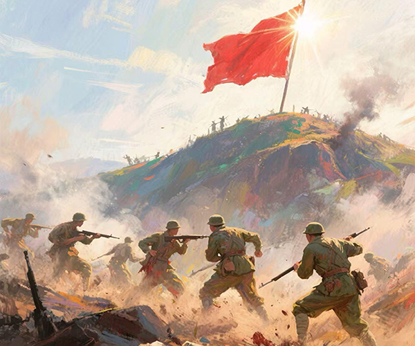 谁擎赤帜凌霄?筑血肉长城驱寇妖。